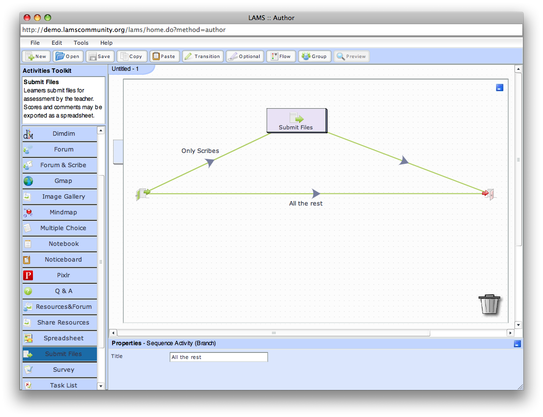 > I want that the group submit a file as a group. You mean that with Forum & Sorry, you are correct. The scribe cannot submit a file but rather a report using the text area. If you *really* need the scribe to submit a file on behalf of the group, you can put a branching activity and inside one activity-less branch and one branch only for the scribes. You can choose Teacher selected branching so the teacher assigns the scribe to the branch so they can submit their papers on behalf of the team. Not the most elegant of all sequences, but it works See images attached. Thanks Ernie Posted by Ernie Ghiglione |