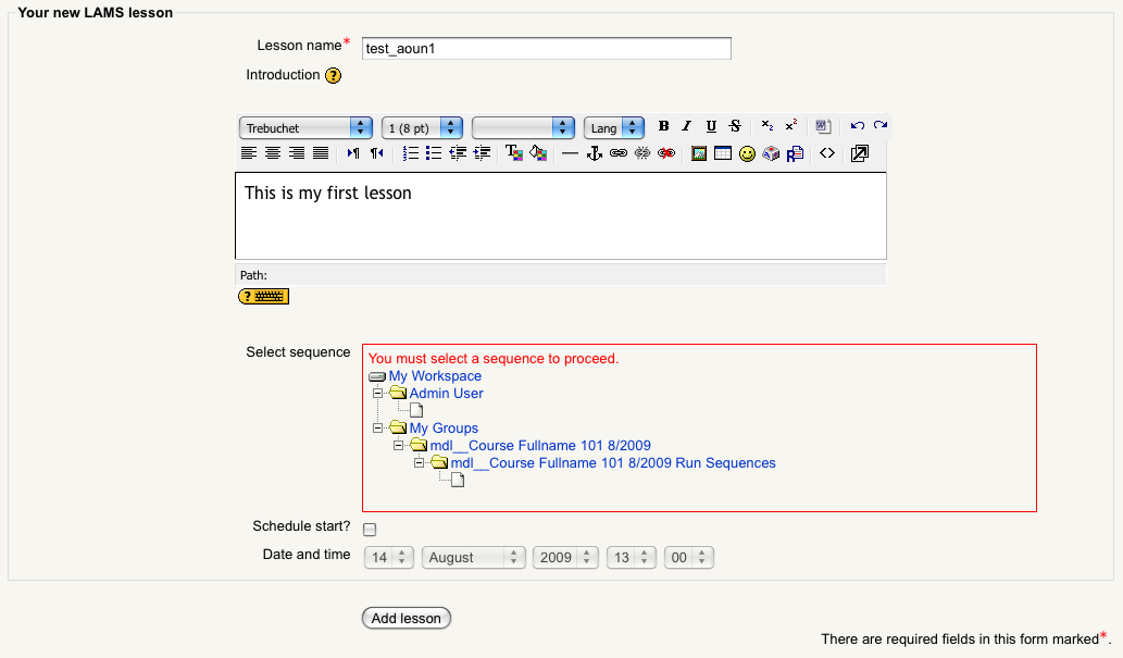 Create LAMS activity and add to moodle