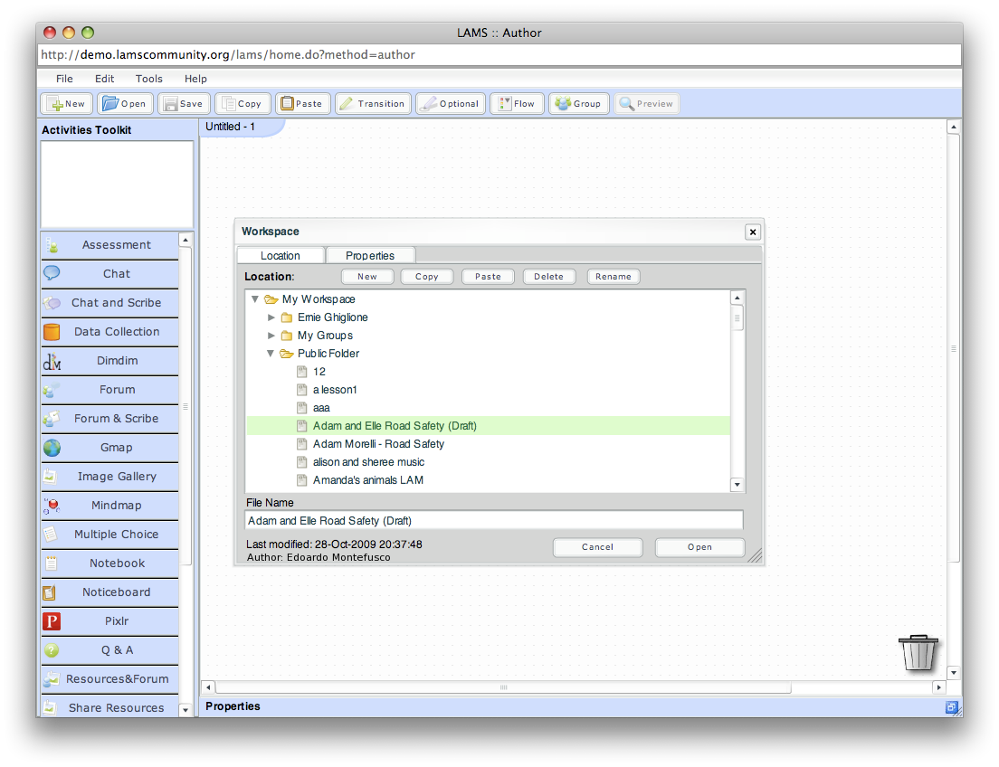 I think that we should see immediately the author of a sequence; the name of the author could be added in automatic at the title or to be visible in the work area next to the title when it opens the sequence. Or you could add a tab (Author tab) next Position tab and Property tab in the dialog box (Save as). And perhaps placing the history of the various editions of the sequence.