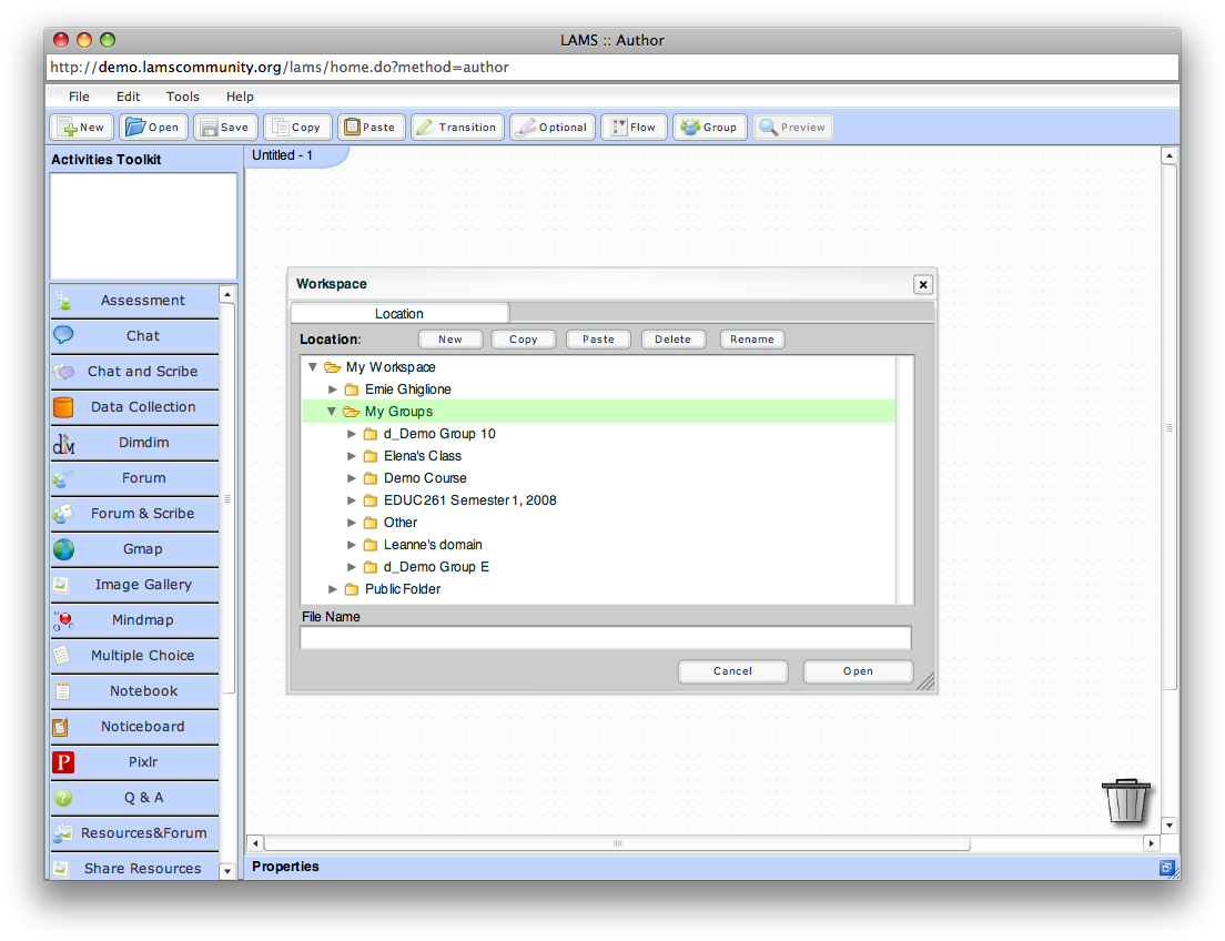 I bang my head against this problem (or maybe I am blind not doing any LAMS for a while ...) We need this for two reasons: 2) Fallback would be to use the public folder that only can be seen in the authoring tool. Btw. as an author I don't see my "public" sequences in My profile->All my lessons (roughly, I am looking at the french interface). Would be nice to have a pointer there. cheers and thanx :) - Daniel BTW: I am still thinking that "groups" ought to be improved. A 2 levels-only structure is ok for a small server like ours, but must lead to quite a mess on a big one..... Posted by Daniel Schneider |