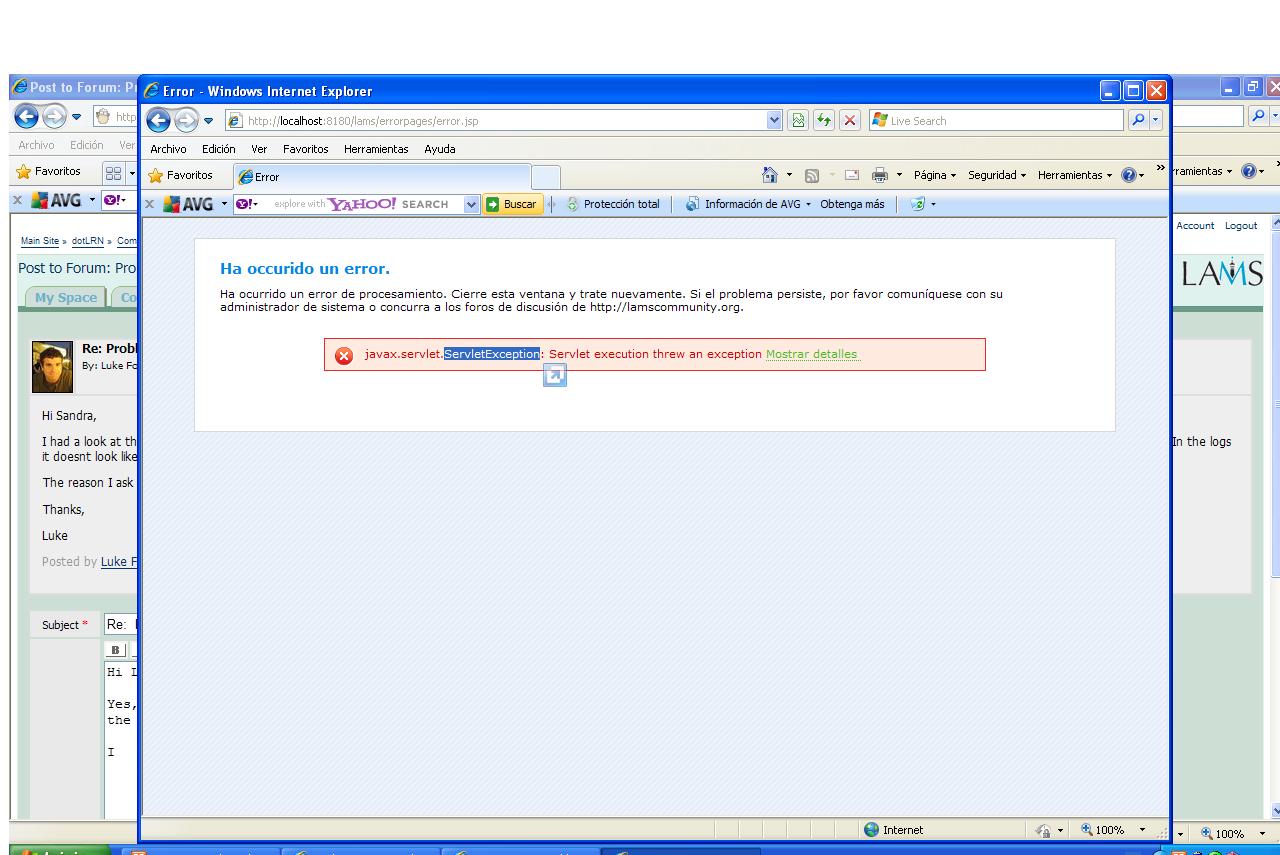 I have attached the logs, I hope would help to solve my problem because when I saw the activities in lams I thought I succeed but then.....the error!!I hope you can help me, thank you!