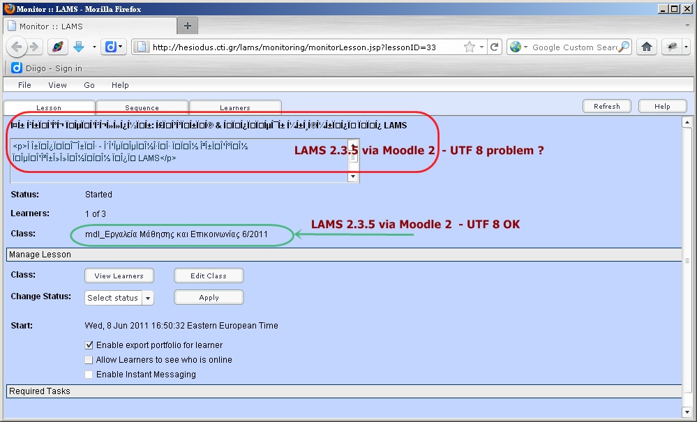 UTF 8 problems in LAMS 2.3.5 - Moodle 2 integration