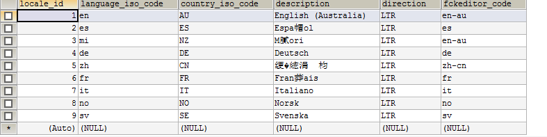 VALUES (10, 'ko', 'KR', '한국�?, 'LTR', 'ko');