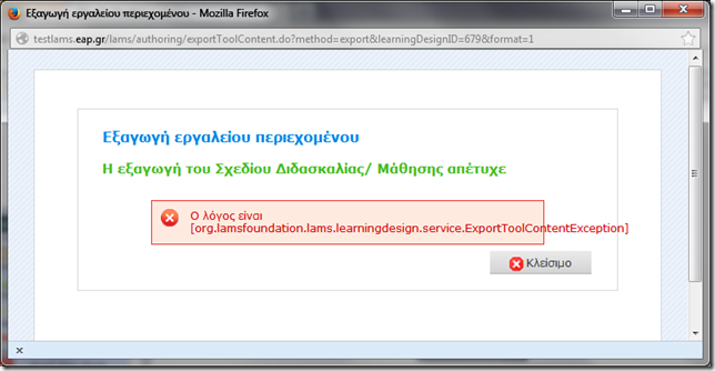 3. Try once more time whithout doing anything else to export as a LAMS sequence : OK (this time works)