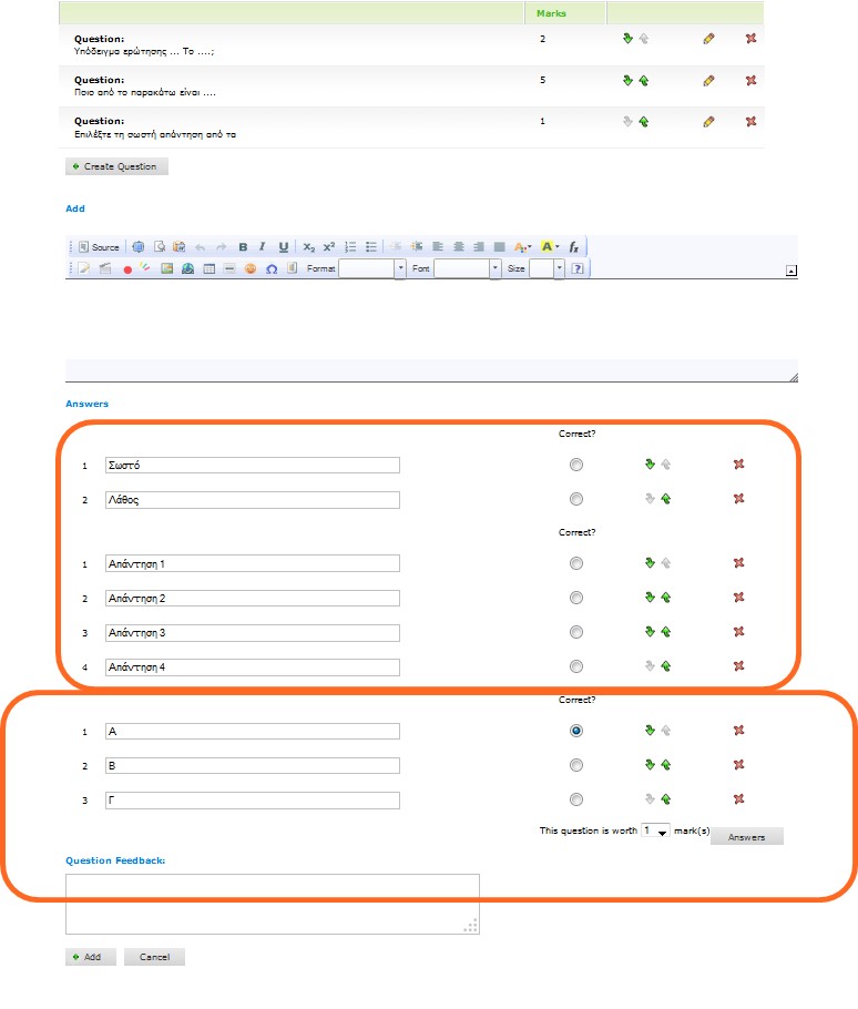Suddenly the Multiple Choice tool when you click on Create button to add a new questions it occurs multiple set of Answers as possible selections See the attachment. Any idea? Something wrong with database ? Thanks, Spyros Posted by Spyros Papadakis |