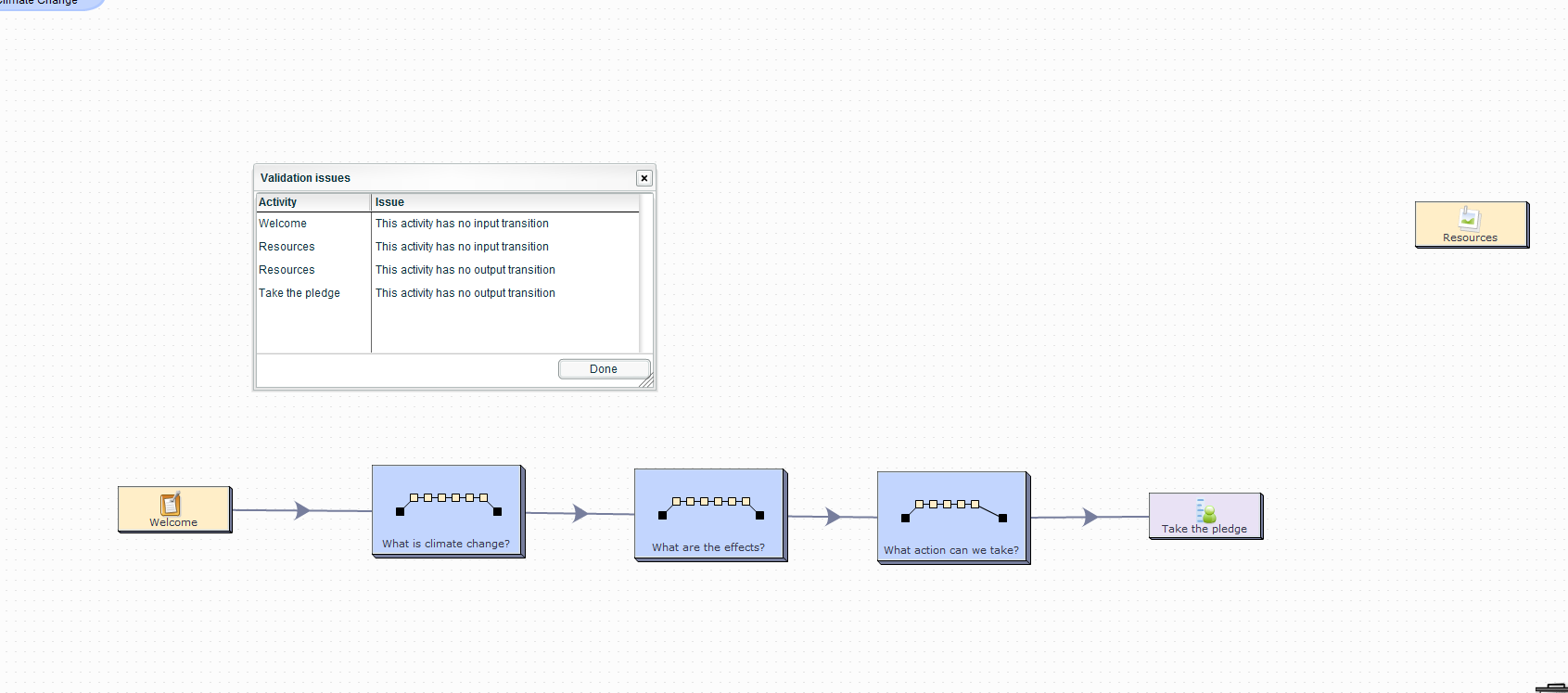 When saving my file I am getting unusual validation issues. LAMS is asking for my first noticeboard to have an input, and my last activity to have an output.
