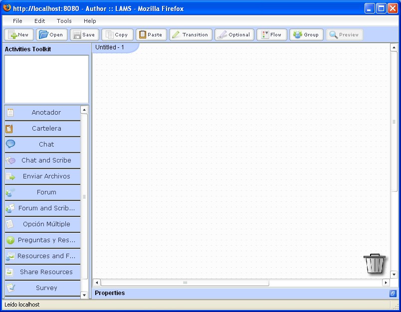 The problem was that in Author, some activities in the activity list (the tools in the left hand side of the screen) would appear in a difference language even when LAMS server was set to be running on English. (see attached picture as an example- Notebook, noticeboard, Submit and others appear in Spanish, however the server is set to be in English) Lily from China was the first to raise this report and we weren't able to replicate this in Sydney. Later on, Ximena from Spain pointed out that she was having a similar problem when she installed LAMS in an Spanish OS and LAMS was set to run in English. We realized that the language these activities were showing was the OS language. So in the case of Lily, the tools would appear in Chinese and for Ximena, in Spanish. (Note that this problem does not occur if you are running LAMS in the same language as your OS. Which is why this was a really uncommon issue for other people) Dapeng and Fiona looked into this and we realize there's an issue with the how Spring and Struts deal with the translationd file (read the whole extend in the bug tracker). The good news is that this is now fixed The solution involves applying the Language Pack for those of you who have used the Windows installer. The Language Pack will be available next week. For those of you who installed LAMS from source or have customized installation (or even for those who used the Windows installer and want to be a bit adventurous) then here are the instructions: LAMS 2.0 stores all the dictionary files in the follow directory: (your-jboss-dir)/server/default/deploy/lams.ear/lams-dictionary.jar/org/lamsfoundation/lams In there you will see ApplicationResource_xx_YY.properties files for each of the modules in LAMS (the directories in this folder). All you would need to do is to copy the ApplicationResources.properties file to a file called ApplicationsResources_en_AU.properties in each of the directories of this folder. For instance, you need to get to the admin directory and copy the ApplicationResources.properties to a ApplicationsResources_en_AU.properties in the *same* directory. The ApplicationsResources_en_AU.properties does not exist so you'll be creating it from teh ApplicationsResources.properties file. Keep doing this for all the other directories. Then restart LAMS and that should solve this problem straight away. If you have any problems, just post your questions here. Thanks, Ernie Posted by Ernie Ghiglione |