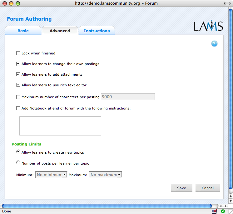 - What constitutes "task completion" for the later version of the tool (ie, you've already clicked "Finished" the first time, so what do you do here? Task completion is important so that LAMS knows to present the next activity to you).
