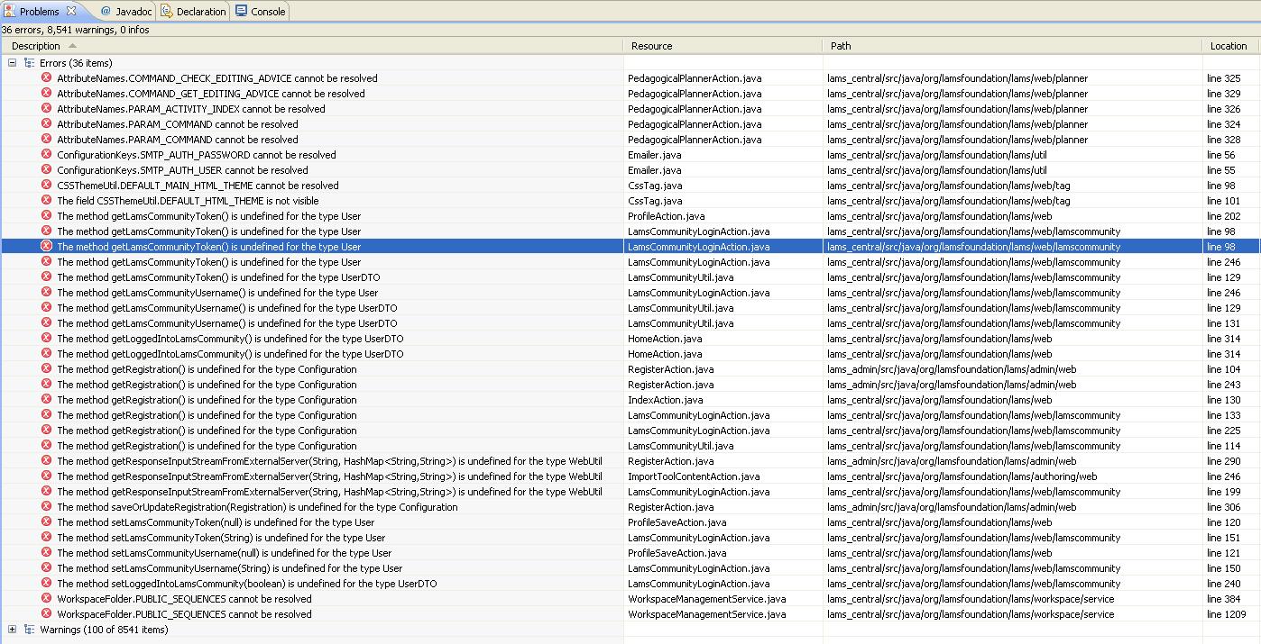 Compilation Erros in LAMS 2