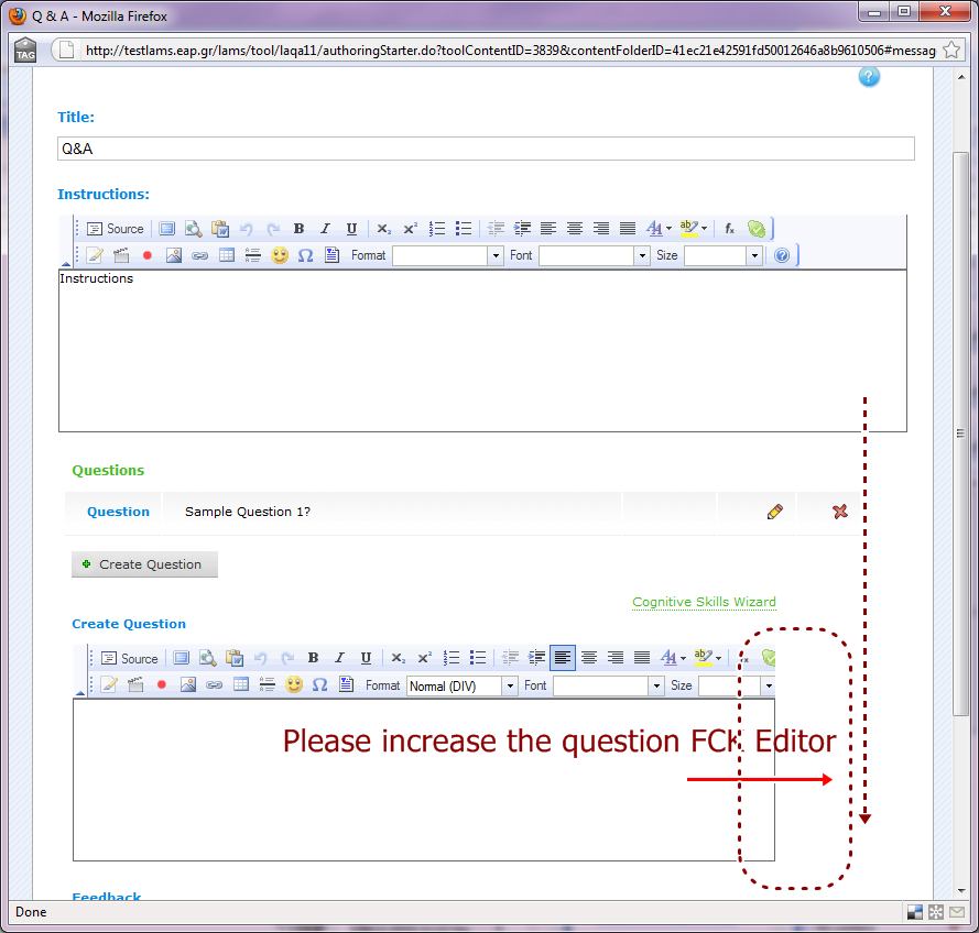 There is also a small problem with the length of Question's FCK Editor. Spyros Posted by Spyros Papadakis |