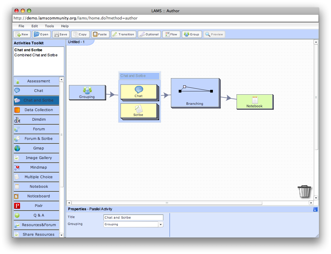 Say we have 30 people and what we want is to split them in groups of 6 student each to create 5 groups. Then each group would go and read a bunch of resources we have set for them to do and then discuss them in a Chat&Scribe activity where the Scribe would take notes and then create a document that he/she then would submit (as team leader) in a shared resources activity.