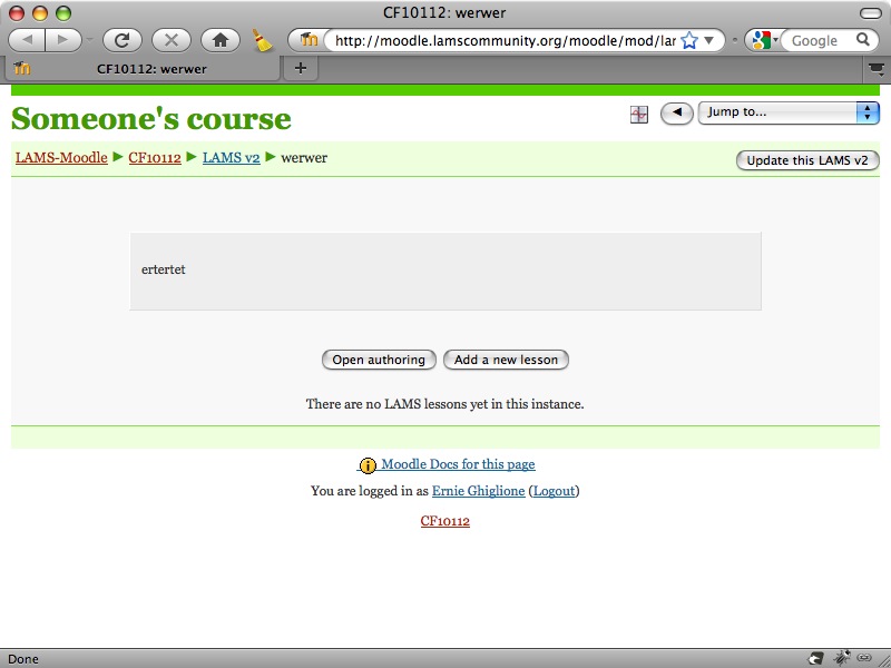 I have moodle and LAMS working via lamstwo. So far from Moodle, I can click add activity -> LAMS v2 I am unable to figure out how to make the LAMS sequences show in Moodle though. Any idea? Regards, Posted by Youssef Aoun |