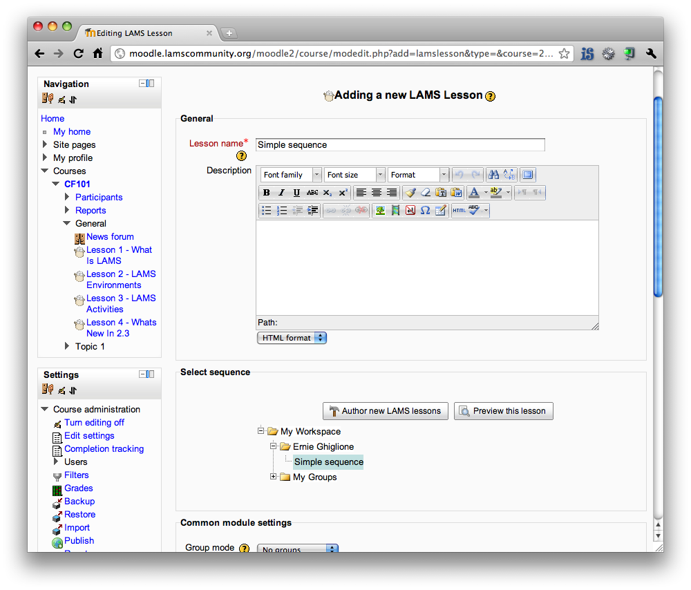 Alright, so we are getting ready to start testing the LAMS -Moodle2 integration.