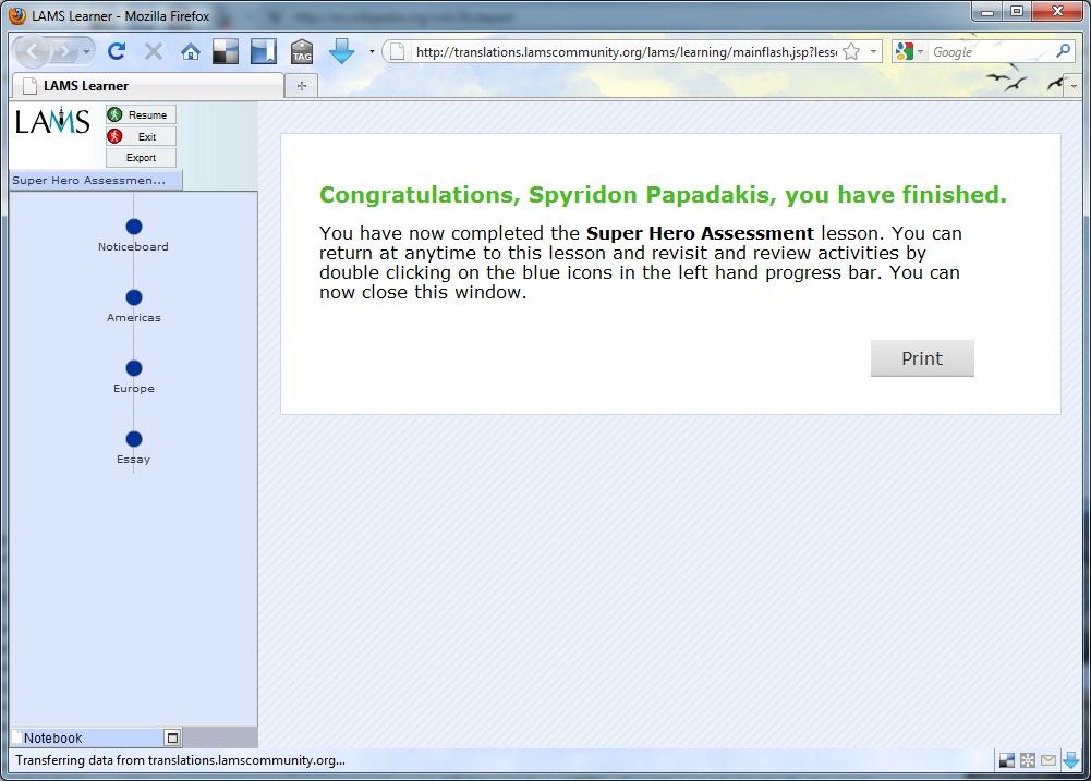 So I'm thinking of using the Gradebook API in Moodle to pass marks that you get in LAMS directly to the Moodle Gradebook.
