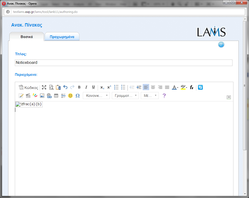 there is a problem with equations in fck editor in LAMS 2.5. I can use the equation editor but the equation does not appears as image (see attach) Posted by giorgos fakiolakis |