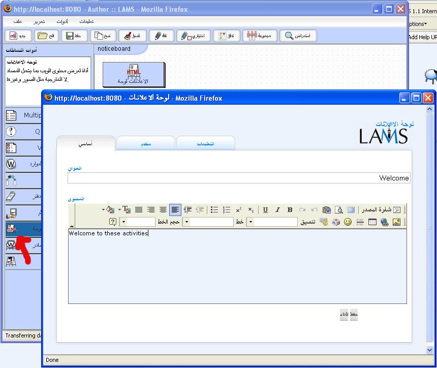 We would appreciate any feedback that you could give us. I repeat - only the login page, the main LAMS page and the noticeboard tool has been done in right to left. The rest of the system is still left to right. But I want to make sure I have it right in noticeboard first before we apply it to the rest of the system.