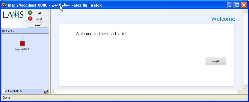 * Login to LAMS as the user (e.g. test1). You should now see most, if not all, pages in Arabic.