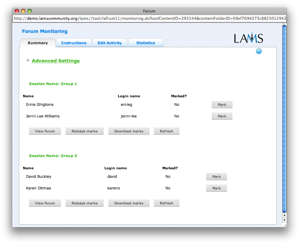So to apply the use of groups to activities, you do this from the Authoring interface.
