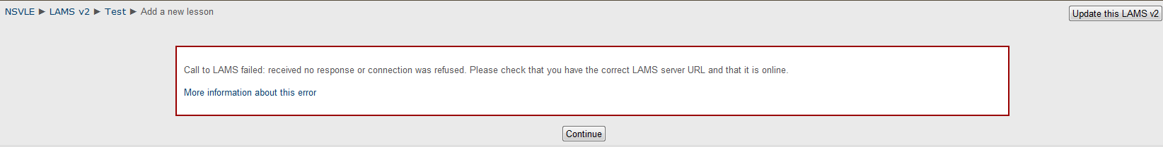 **I have checked that the connection validates within the LAMS v2 module and all is well with that. The LAMS sysadmin menu also appears correct.